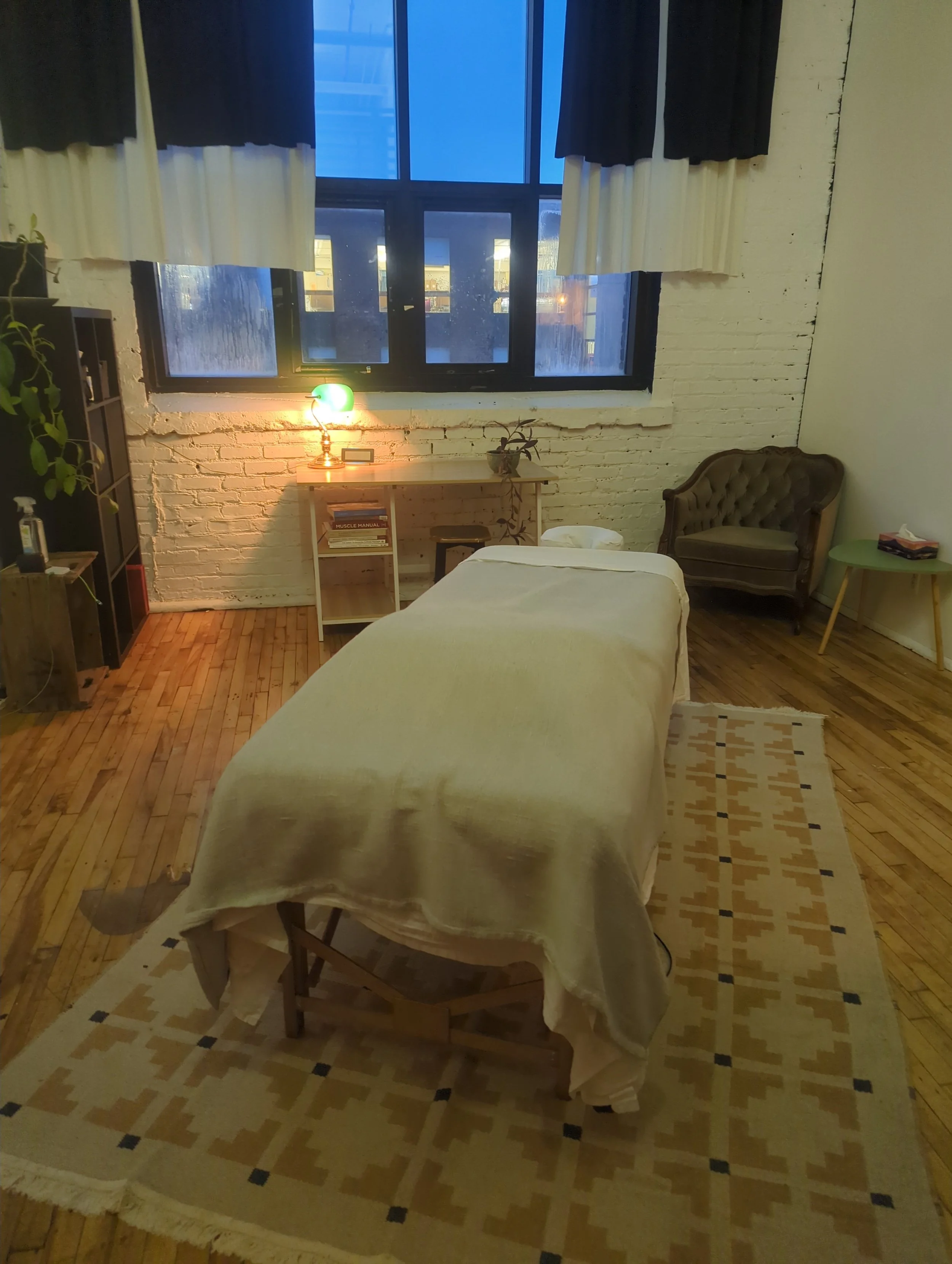 As a practitioner, I have worked both in private practice as well in multi-disciplinary settings alongside acupuncturists, physiotherapists and osteopaths. I am currently offering treatment out of my private studio located in Centre Sud. You can also catch me at the monthly Community Healing Days General Clinic Days, where I work alongside an amazing team of folks to offer accessible treatments to individuals facing barriers to healthcare at a low to no cost rate.